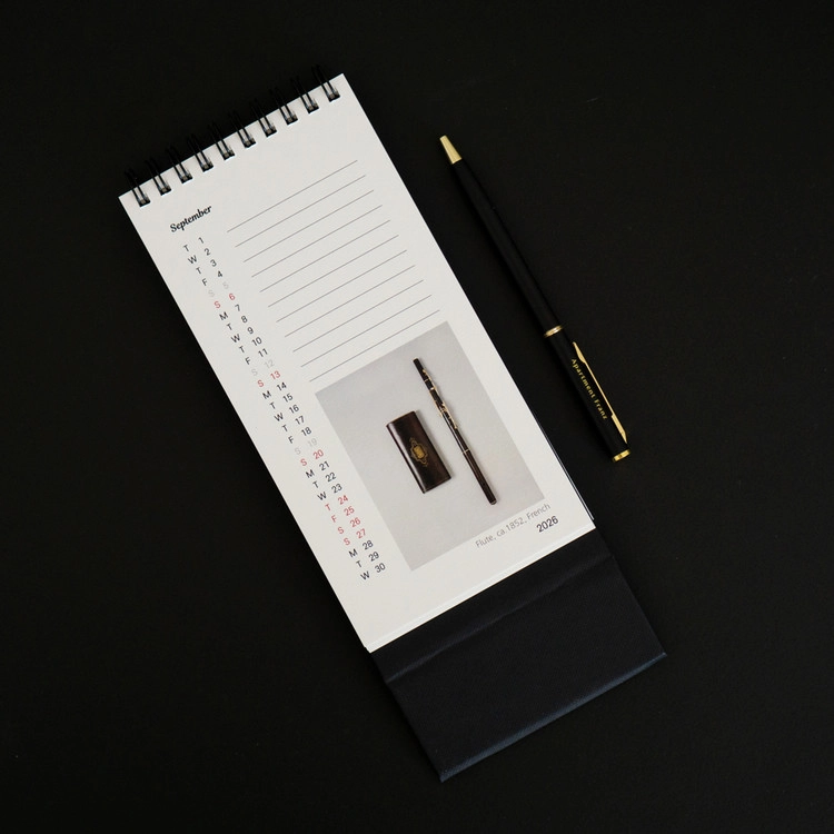 반대쪽 페이지에는 진귀한 관악기 사진이 자리하며 간단한 메모를 하실 수 있습니다.