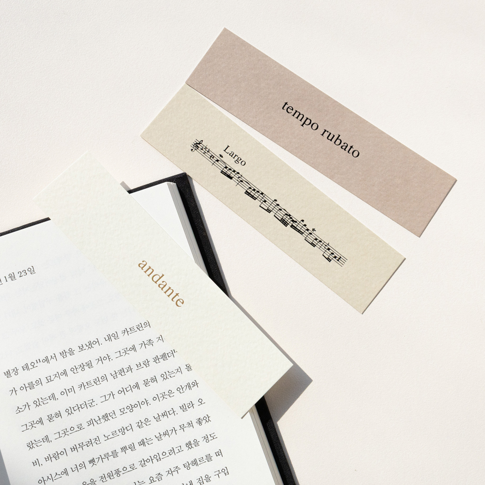 읽는 속도를 음악의 빠르기로 표현한 3종의 책갈피 세트입니다.