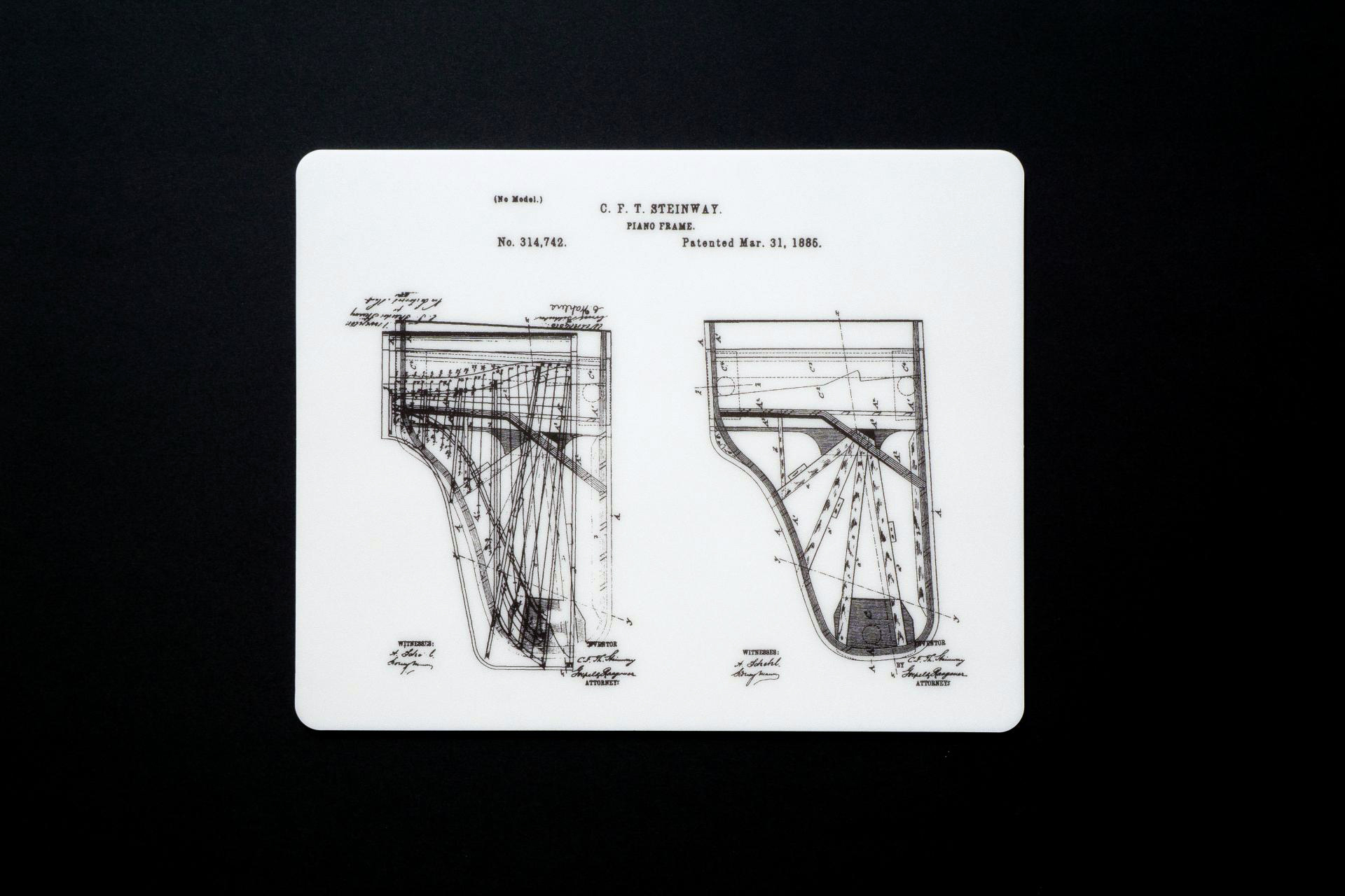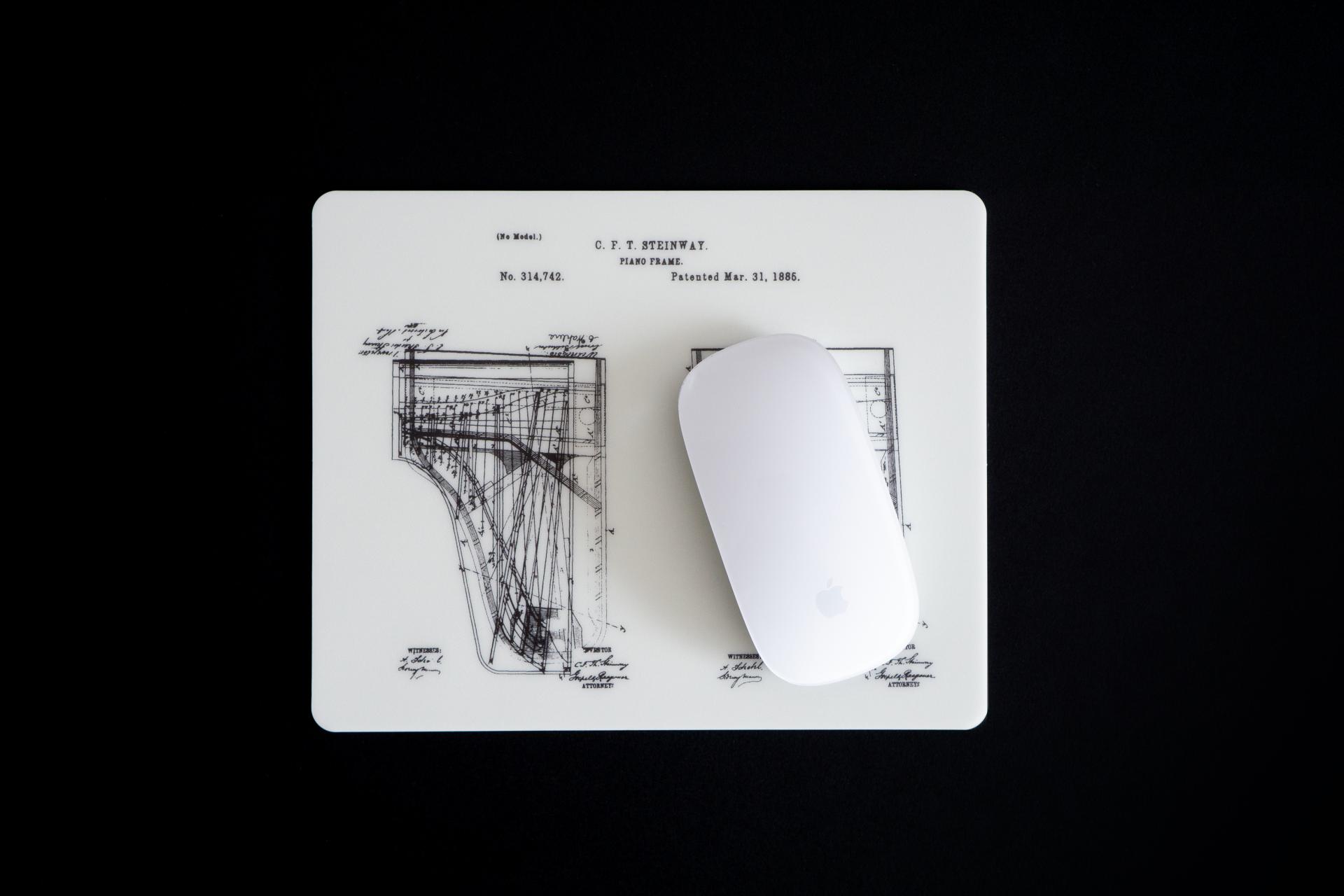 스타인웨이의 그랜드 피아노 도면을 담은 마우스패드입니다.